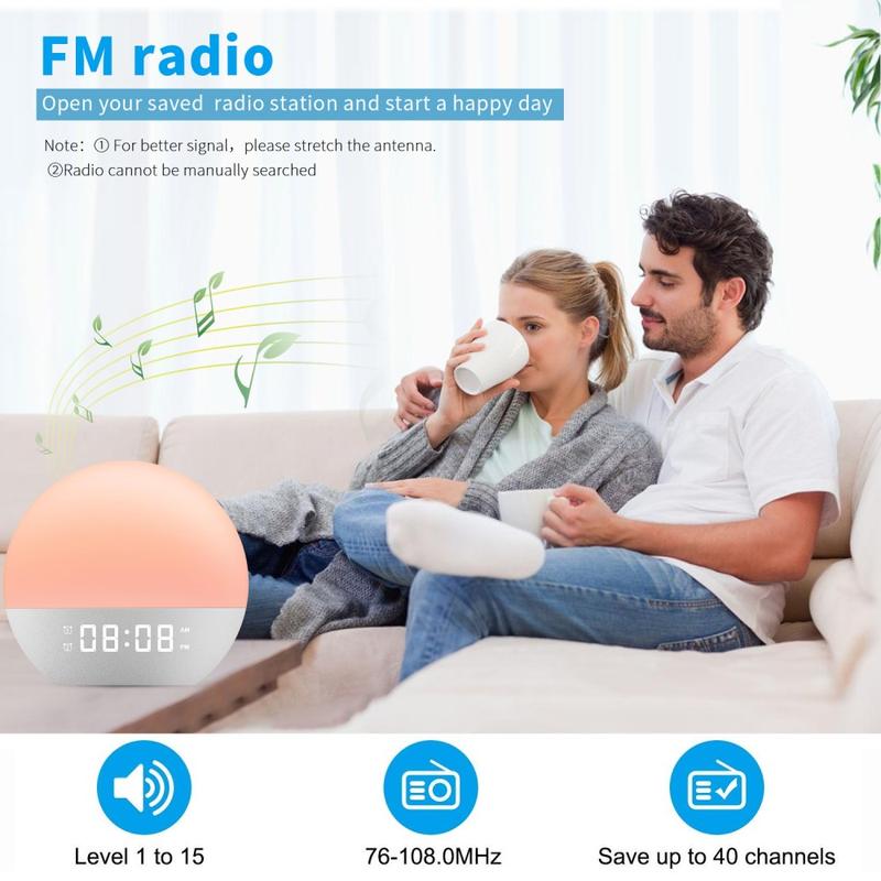 - Wekker met zonsopgang die geleidelijk in helderheid toeneemt voor een zachtere start van de dag