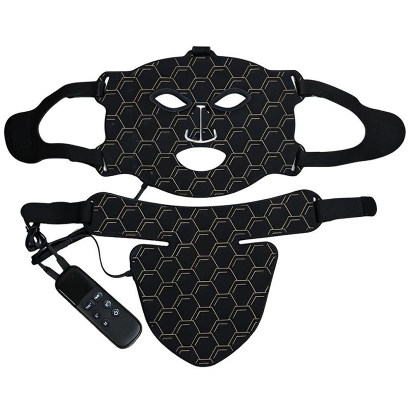 Siliconen schoonheidsapparaat voor het gezicht / LED-lichttherapie masker voor gezicht en hals - Zwart