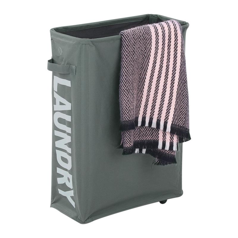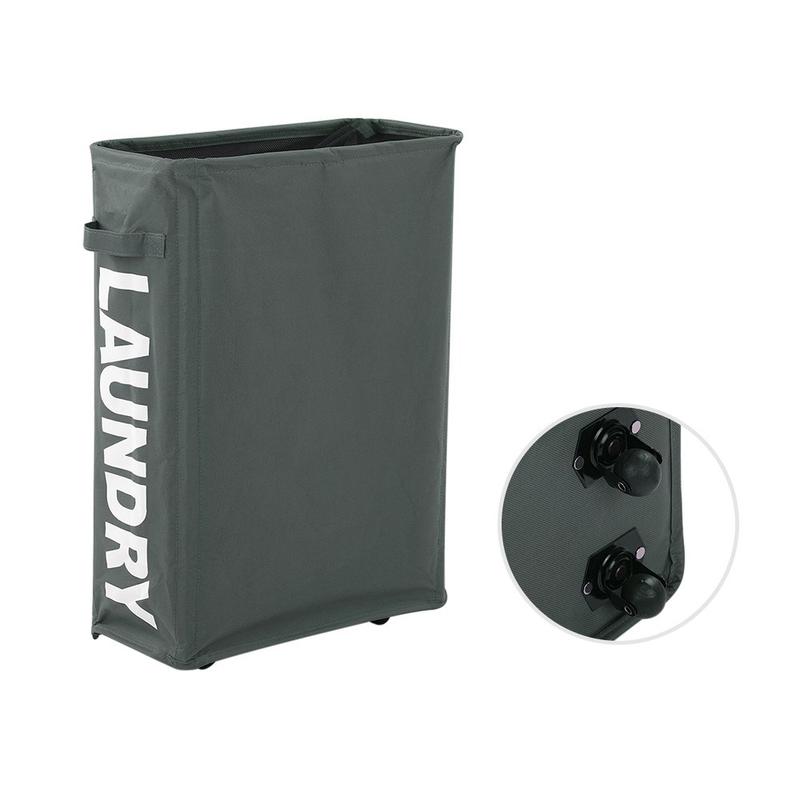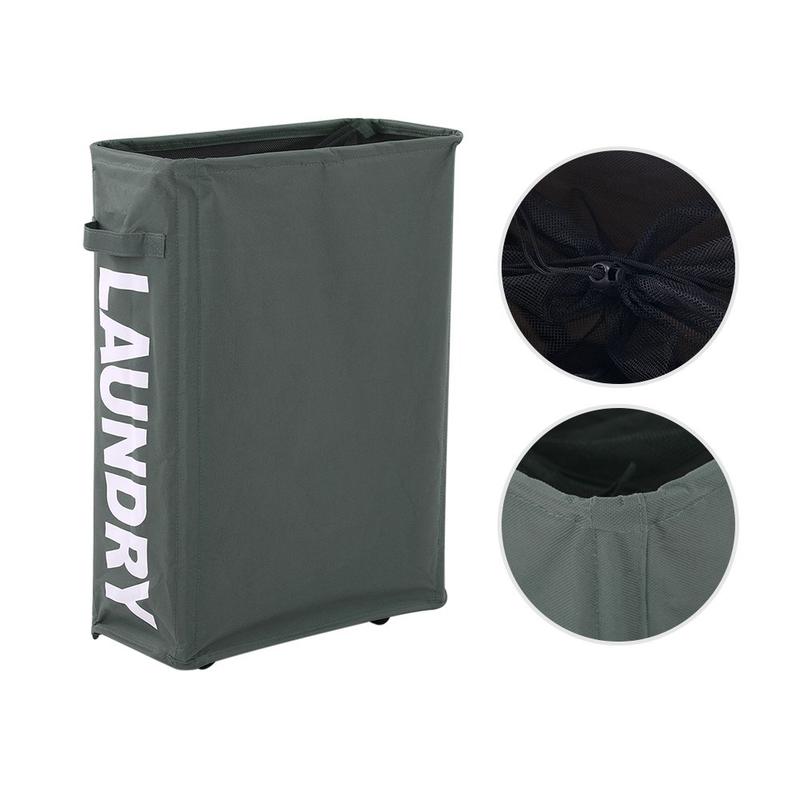 Slanke opvouwbare Oxford wasmand met wieltjes & gaas koorddeksel - hoekemmer voor vuile kleren