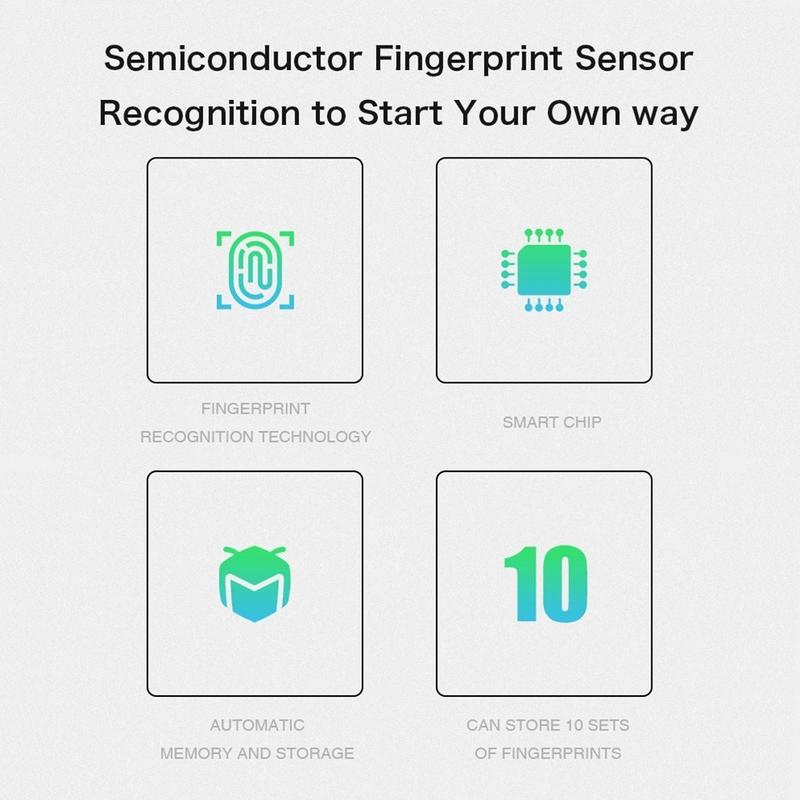 Dit minihangslot is gemaakt van een behuizing van zinklegering en een zeer sterke roestvrijstalen slotbeugel, en is ontworpen voor betrouwbaar dagelijks gebruik. Het kan tot 10 vingerafdrukken opslaan, inclusief die van de beheerder en gewone gebruikers, en de oplaadbare batterij biedt een lange stand-bytijd en kan gemakkelijk via USB worden opgeladen. Dankzij het compacte formaat is het gemakkelijk mee te nemen, terwijl het vingerafdruksysteem helpt om de veelvoorkomende problemen van verloren sleutels en vergeten codes te voorkomen.