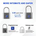 Houd uw persoonlijke spullen beter beveiligd met dit slimme vingerafdrukhangslot, een compact sleutelloos slot dat is ontworpen voor dagelijks gebruiksgemak. In plaats van sleutels of wachtwoorden te gebruiken, ontgrendelt het slot met uw vingerafdruk, waardoor het een praktische keuze is voor kasten, rugzakken, koffers, sportkluisjes en opbergdozen.