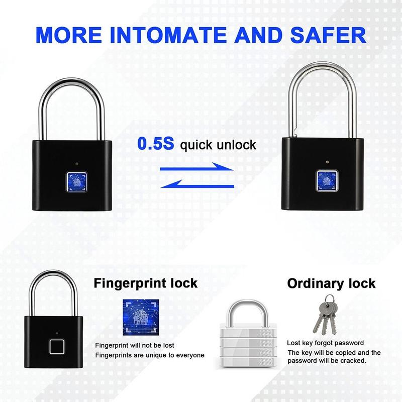 Houd uw persoonlijke spullen beter beveiligd met dit slimme vingerafdrukhangslot, een compact sleutelloos slot dat is ontworpen voor dagelijks gebruiksgemak. In plaats van sleutels of wachtwoorden te gebruiken, ontgrendelt het slot met uw vingerafdruk, waardoor het een praktische keuze is voor kasten, rugzakken, koffers, sportkluisjes en opbergdozen.