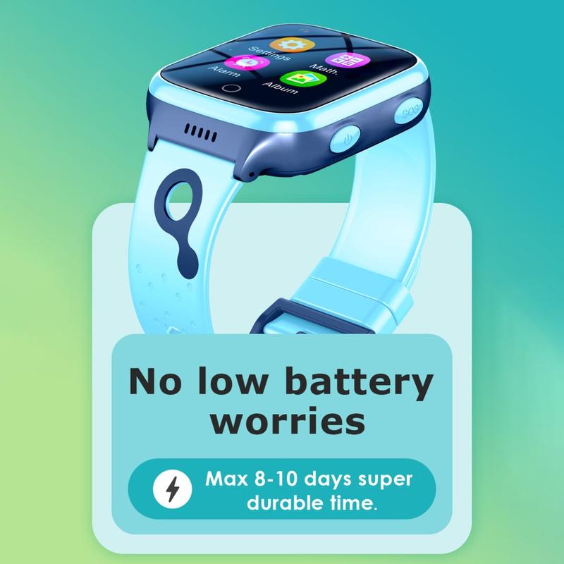 Het 1,4 inch IPS-touchscreen biedt een helder en kleurrijk beeld, terwijl de combinatie van GPS, wifi en LBS-positiebepaling zorgt voor een nauwkeurigere locatieondersteuning. Met ondersteuning voor spraak- en videogesprekken, bewaking op afstand en internettoegang via wifi en 4G helpt het horloge kinderen de hele dag verbonden te blijven. De ingebouwde stappenteller stimuleert ook actievere dagelijkse gewoontes, en de zachte siliconenband van voedingskwaliteit is ontworpen voor comfortabel dagelijks gebruik.