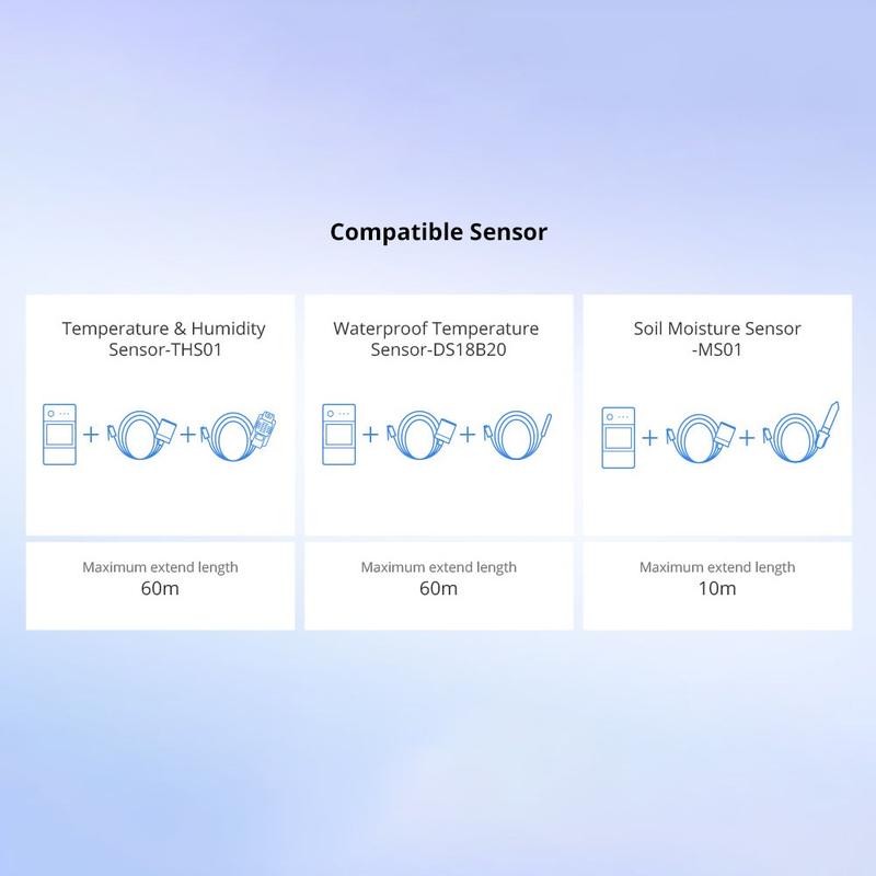 - Werkt met Sonoff RJ11-sensoren zoals THS01 en DS18B20 met RJ11-aansluiting