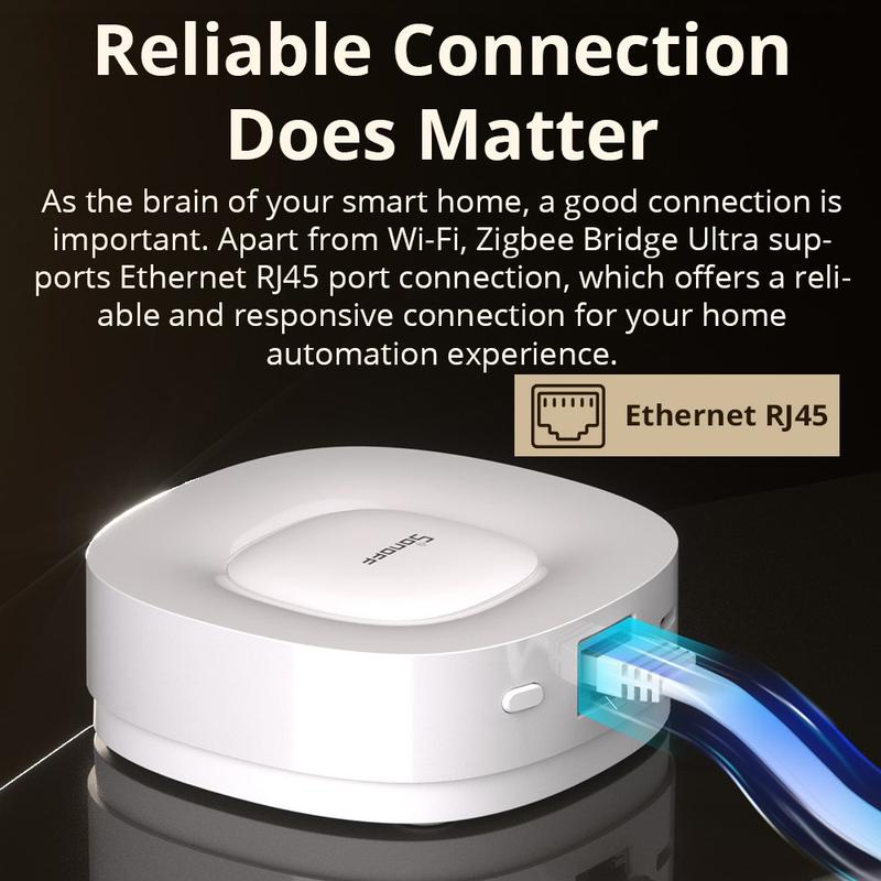 Breng uw smart home-ecosysteem samen met de Sonoff ZBBridge-U Zigbee Bridge Ultra. Deze geavanceerde gateway verbindt Zigbee 3.0-apparaten met uw wifi-netwerk en ondersteunt Matter-bridgefunctionaliteit, waardoor compatibele Zigbee-apparaten naadloos kunnen worden geïntegreerd in verschillende smart home-platforms. Met zowel wifi- als bekabelde ethernetopties biedt het flexibele en stabiele connectiviteit voor betrouwbare automatisering, beveiliging en spraakbesturing.