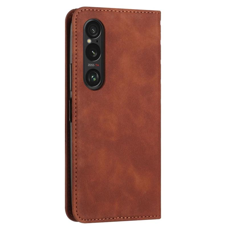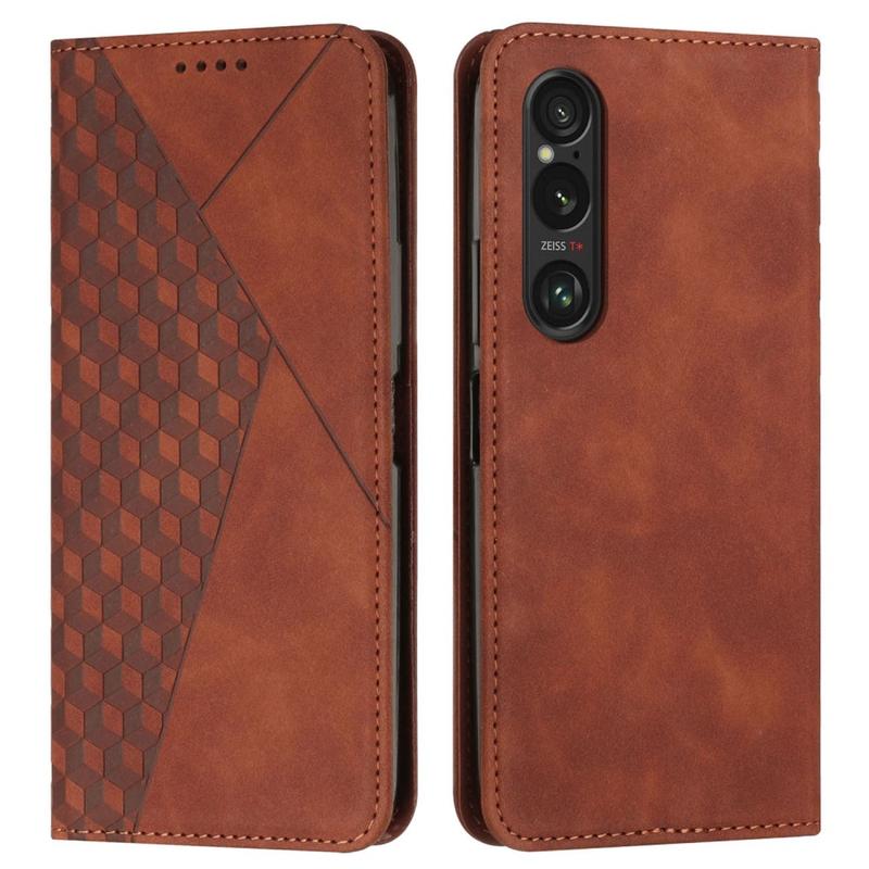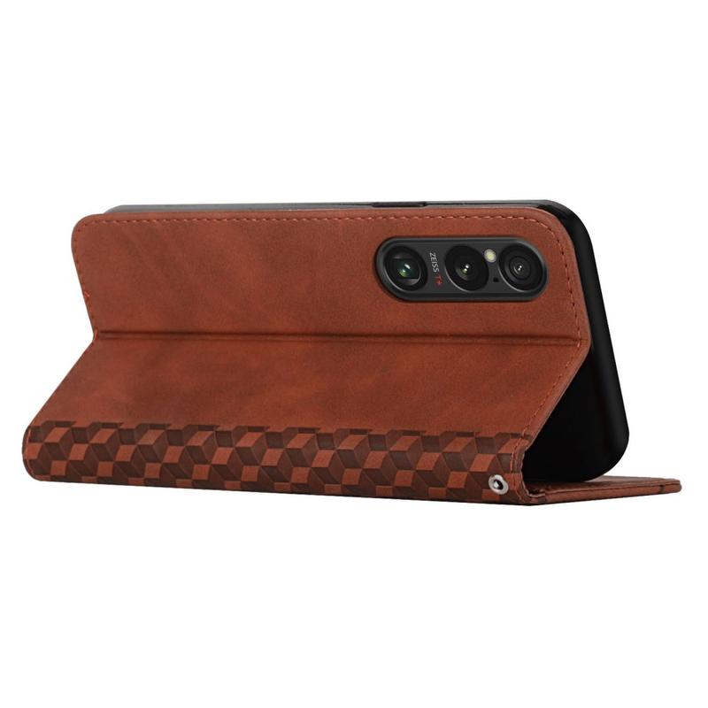 Sony Xperia 1 VI Ruitpatroon Portemonnee Hoesje met Magnetische Sluiting - Bruin