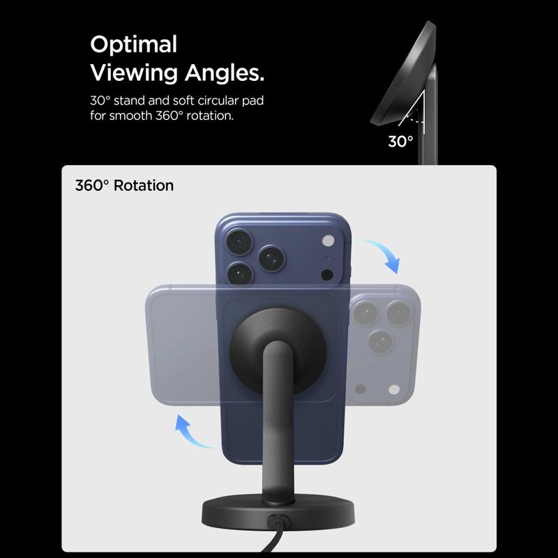 • Spigen EF151MS Essential MagSafe draadloze oplader 15W - magnetische oplaadstandaard met 30 graden kantelhoek en USB-C-kabel van 1 m