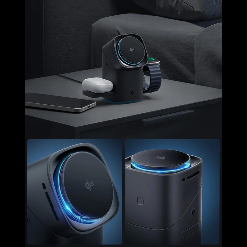 Spigen Essential EF223MS 3-in-1 Qi2 MagSafe draadloze oplader - roterende iPhone-standaard/lader, AirPods en oplaaddock voor Apple Watch