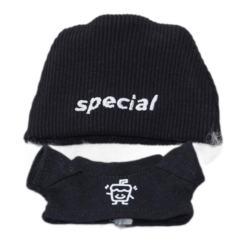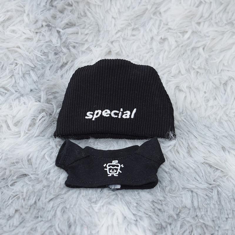 Street Style kleding voor Labubu pop 17cm - gebreide muts & grafisch T-shirt kostuum