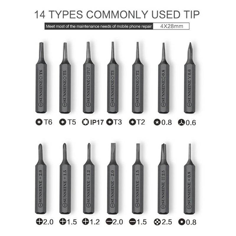 - Inclusief 14 magnetische S2-legeringstalen bits voor veelvoorkomende reparaties