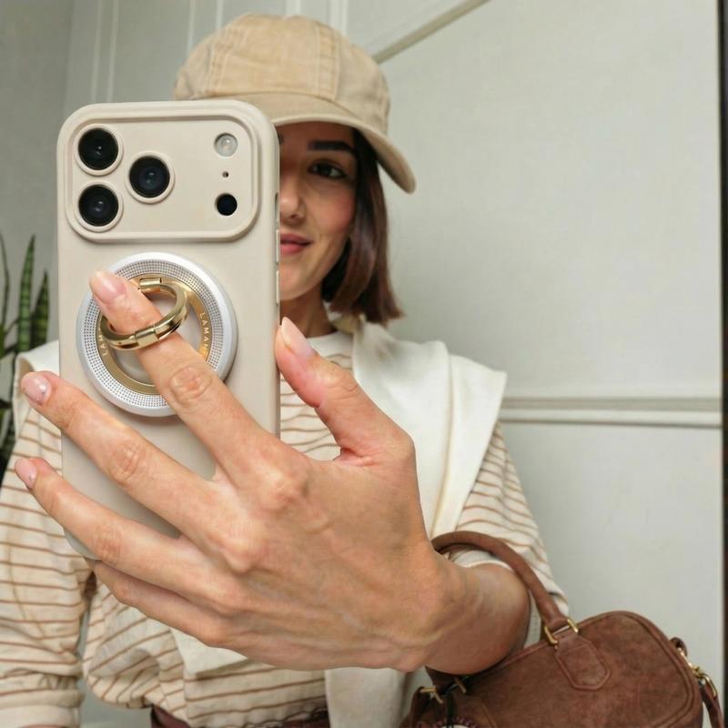 De ring is gemaakt van duurzame, aangenaam aanvoelende materialen en biedt een stevige grip voor gebruik met één hand, terwijl hij een verfijnde, moderne uitstraling behoudt.