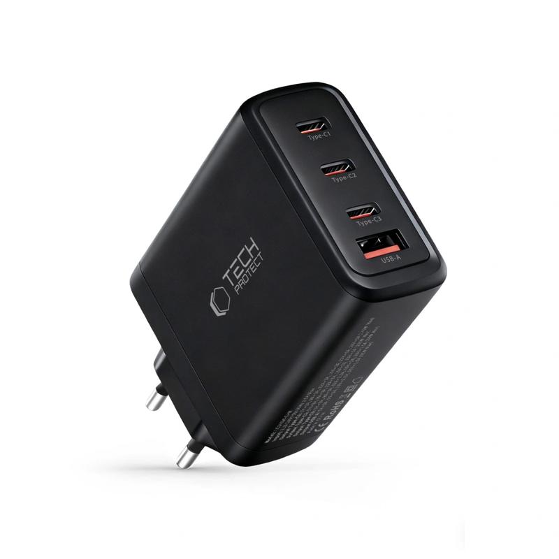 Tech-Protect NC140W 4-poorts GaN-oplader - 3x USB-C, 1x USB-A, 140W Power Delivery snellader