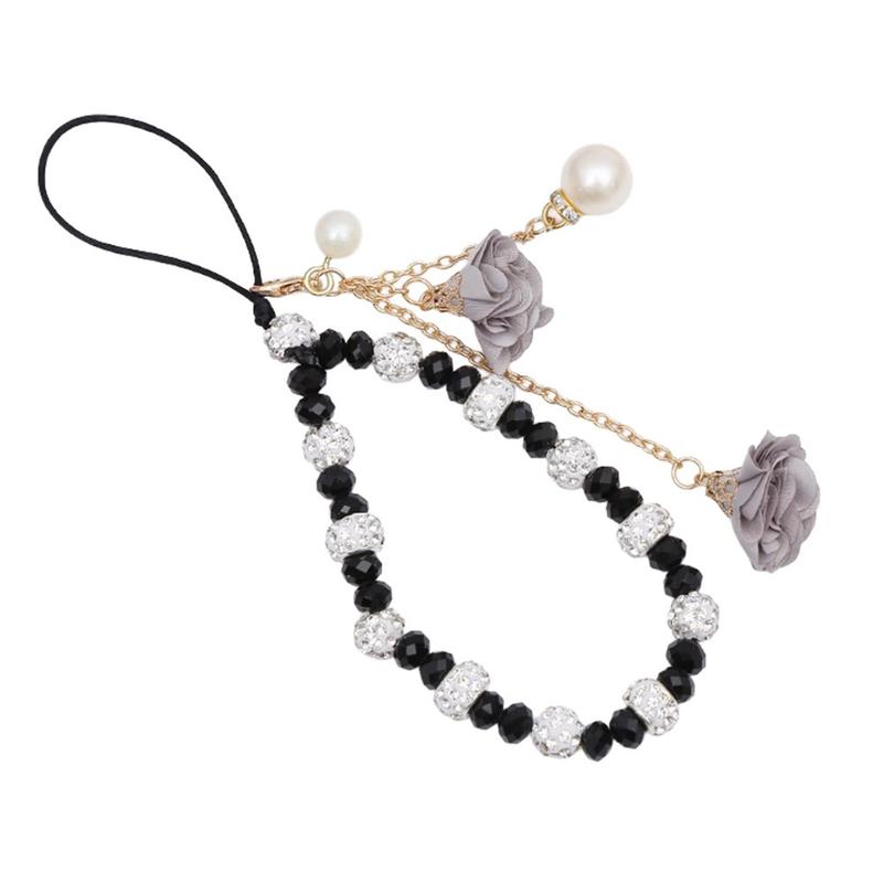 Telefoonkoord van 18,7 cm met kristallen kralen en rozenbedeltjes - polsbandje en handketting voor je mobiel