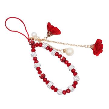 Telefoonkoord van 18,7 cm met kristallen kralen en rozenbedeltjes - polsbandje en handketting voor je mobiel