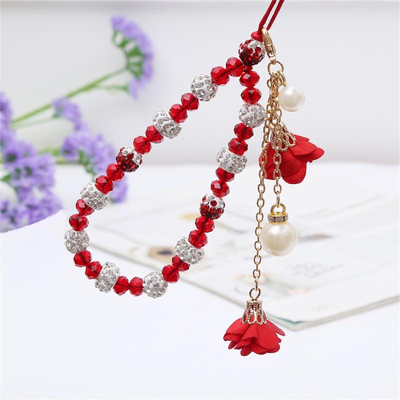 Geef je telefoon een elegante touch met dit 18,7 cm lange telefoonkoord met kristallen kralen. Het is ontworpen als zowel decoratief accessoire als praktische polsband en combineert kralen in kristalstijl, metalen accenten met strass-look, rozenbedeltjes en een hanger met imitatieparel voor een verfijnde alledaagse look.