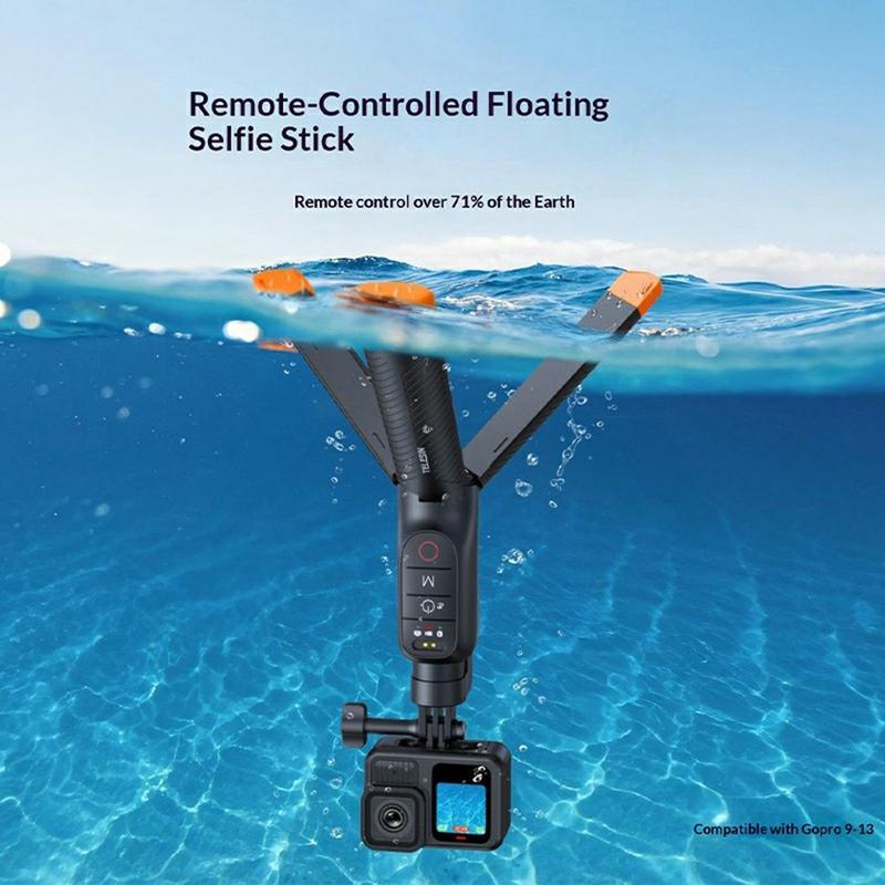 • Telesin S1-TSS-07 Drijvende selfiestick / uitschuifbaar onderwaterstatief met Bluetooth-afstandsbediening voor GoPro Max/Hero13/Hero12/Hero11/Hero10/Hero9