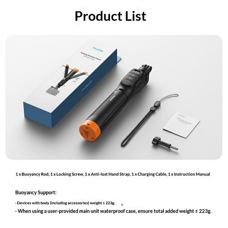 Maak stabielere en flexibelere opnames op het land en in het water met de Telesin S1-TSS-07 drijvende selfiestick. Dit multifunctionele accessoire is ontworpen voor compatibele GoPro-actiecamera’s en combineert een drijvende stick, selfiestick, tafelstatief en Bluetooth-afstandsbediening in één compacte oplossing. Of je nu filmt op het strand, bij het zwembad, op een boot of tijdens dagelijkse buitenavonturen, het biedt je meer opnamemogelijkheden zonder dat je meerdere accessoires hoeft mee te nemen.