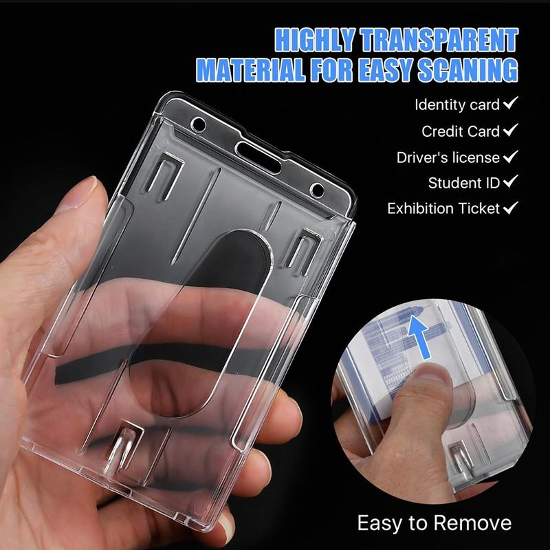 - Dubbele horizontale sleuven accepteren twee standaard 86 × 54 mm kaarten (ID + toegang, reispas + personeelsbadge)