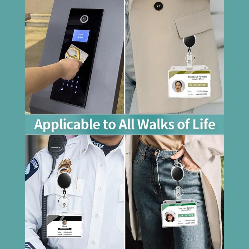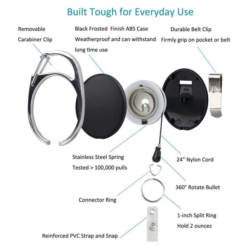 - Intrekbare spoel van zinklegering met nylon koord van 60 cm voor moeiteloos scannen met tikken en gaan