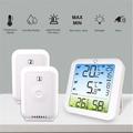 Het duidelijke display toont temperatuur- en vochtigheidsgegevens, terwijl het aanpasbare hoog- en laag-alarm u waarschuwt wanneer de waarden buiten het ingestelde bereik komen. Met draadloze transmissie tot 100 m in open ruimtes, 24-uurs max/min-registratie en flexibele plaatsingsmogelijkheden is dit een handige oplossing voor bewaking thuis, in bedrijven en in opslagruimtes.