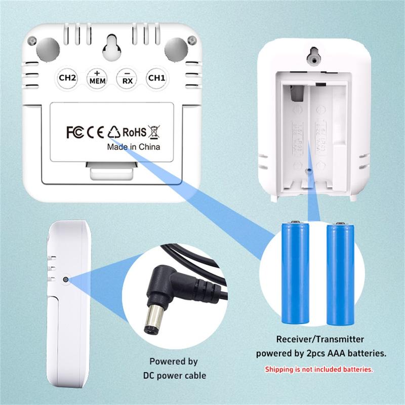 - Voeding ontvanger: DC-voedingskabel of 2 x AAA-batterijen (niet meegeleverd)
