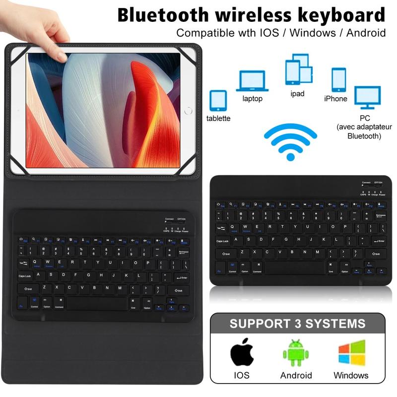 TY3316 Universele tablethoes met Bluetooth toetsenbord - 9-11", polyurethaan standhoes met instelbare kijkhoek, elastische riemen, VS-indeling