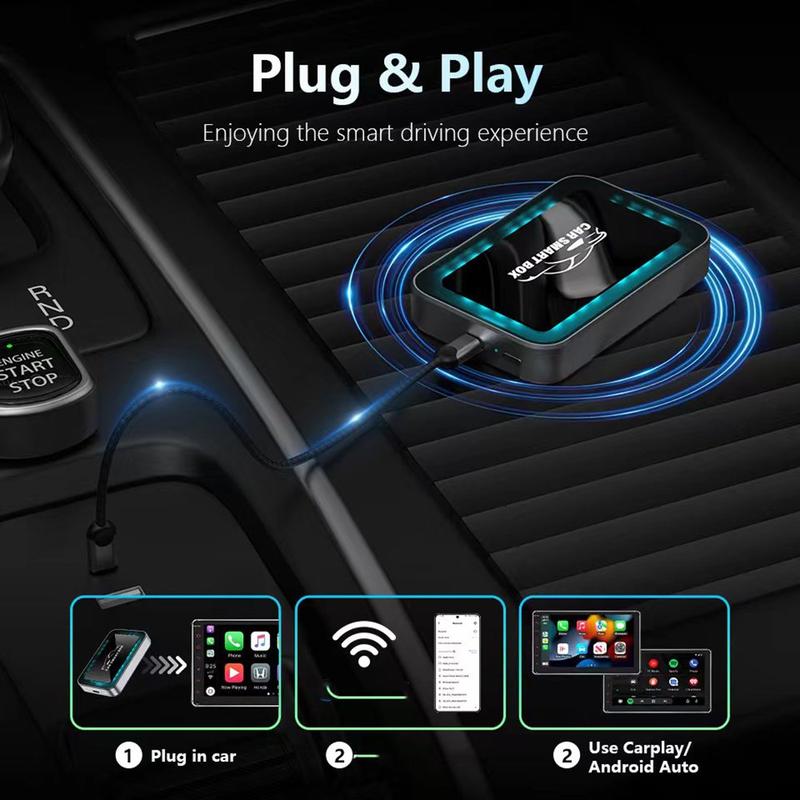 - Draadloze upgrade: Zet bedrade CarPlay of Android Auto om in een draadloze verbinding, zodat je dashboard vrij blijft van kabels.