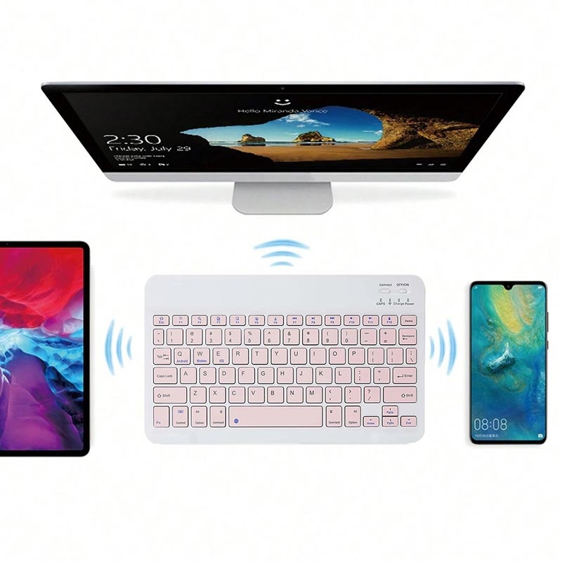 Dit toetsenbord maakt verbinding via Bluetooth en ondersteunt een groot aantal apparaten, waaronder tablets en smartphones van merken als iPad, Huawei, Xiaomi en meer. Geniet van stabiele draadloze prestaties zonder kabels, waardoor het ideaal is voor flexibele werkomgevingen.