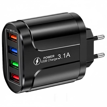 Universele 4-Port Snel Opladen USB-lichtnetadapter - QC3.0, 48W, EU-stekker