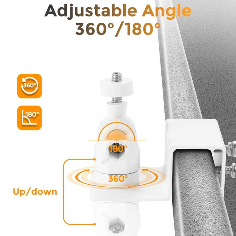 • Universele montage voor beveiligingscamera's op railing en dakgoot - 360° verstelbare aluminium pan-schuine standbeugel met 1/4" schroef