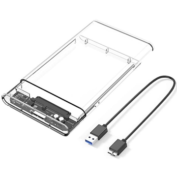 USB 3.0 2.5" SATA HDD/SSD-Hoesje - Transparante behuizing voor externe harde schijf met UASP, tot 5 Gbps, LED-indicator, 50 cm USB-A-kabel (7 mm / 9,5 mm)