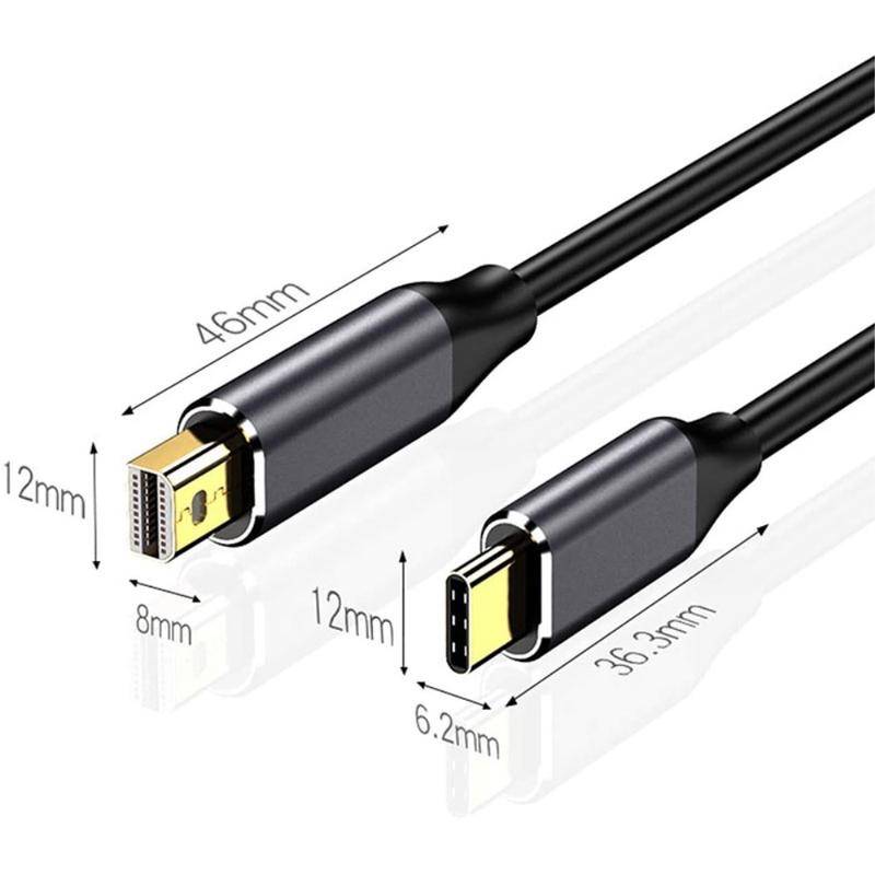 USB-C naar Mini DisplayPort-kabel 1.8m - compatibel met Thunderbolt 3, 4K/60Hz video, aluminiumlegering