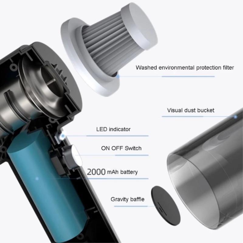 De 6000Pa snoerloze autostofzuiger is een krachtig, draagbaar schoonmaakgereedschap dat ontworpen is om je auto, huis en kantoor brandschoon te houden. Met 120W krachtige zuigkracht en een zuigdruk van 6000Pa verwijdert hij effectief stof, kruimels, haren van huisdieren, roet en zelfs kleine watervlekken. De meegeleverde multifunctionele opzetborstels reiken tot in krappe ruimtes, autostoelen, vloermatten en bagageruimtes voor een grondige reiniging. Lichtgewicht en snoerloos, het levert tot 30 minuten continu gebruik op een volle lading, aangedreven door een 2000mAh oplaadbare batterij. De grote stofbeker van 0,5 liter betekent minder vaak legen, terwijl opladen via USB handig is via adapters, powerbanks of auto-opladers.