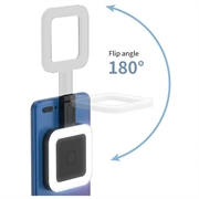 De lampkop kan tot 180° worden gekanteld, zodat je het licht precies kunt richten waar je het nodig hebt. Met traploze aanpassing van de helderheid en kleurtemperatuur van warme tot koele tinten, kun je de verlichting snel aanpassen voor make-up, livestreaming, fotografie of videovergaderingen. Dankzij de ingebouwde standaard kun je je telefoon ook veilig neerzetten voor handsfree kijken of opnemen.