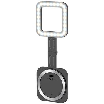 V18 Magnetische Selfie-vullicht - Draagbare LED-videolamp met telefoonstandaard, 3 W, 2500 K-9000 K, oplaadbaar via USB-C