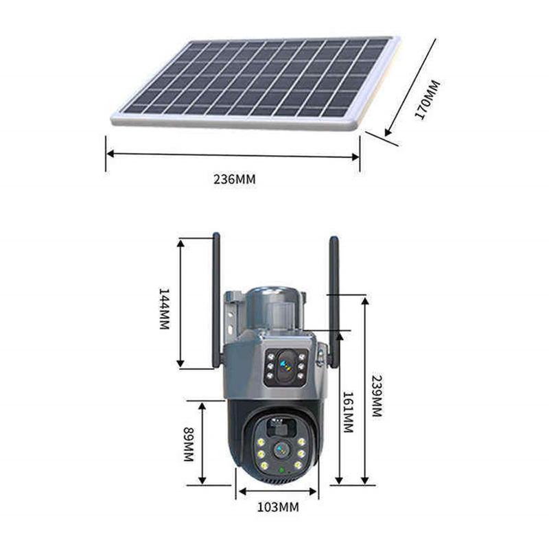 • V380 4G-beveiligingscamera voor buiten op zonne-energie - 4 MP PTZ-camera met dubbele lens, nachtzicht in kleur en bewegingsdetectie