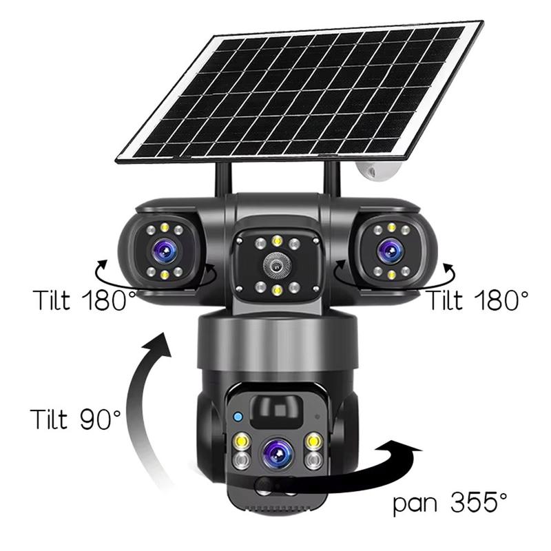 • V380 Pro Solar 3-lens outdoor PTZ WiFi-beveiligingscamera 2K - Menselijke tracking, tweeweg audio, IP67, H.265, TF/cloudopslag