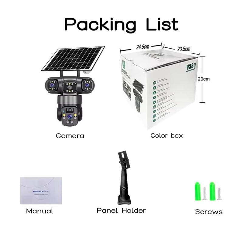 V380 Pro Solar 3-lens outdoor PTZ WiFi-beveiligingscamera met menselijke tracking
