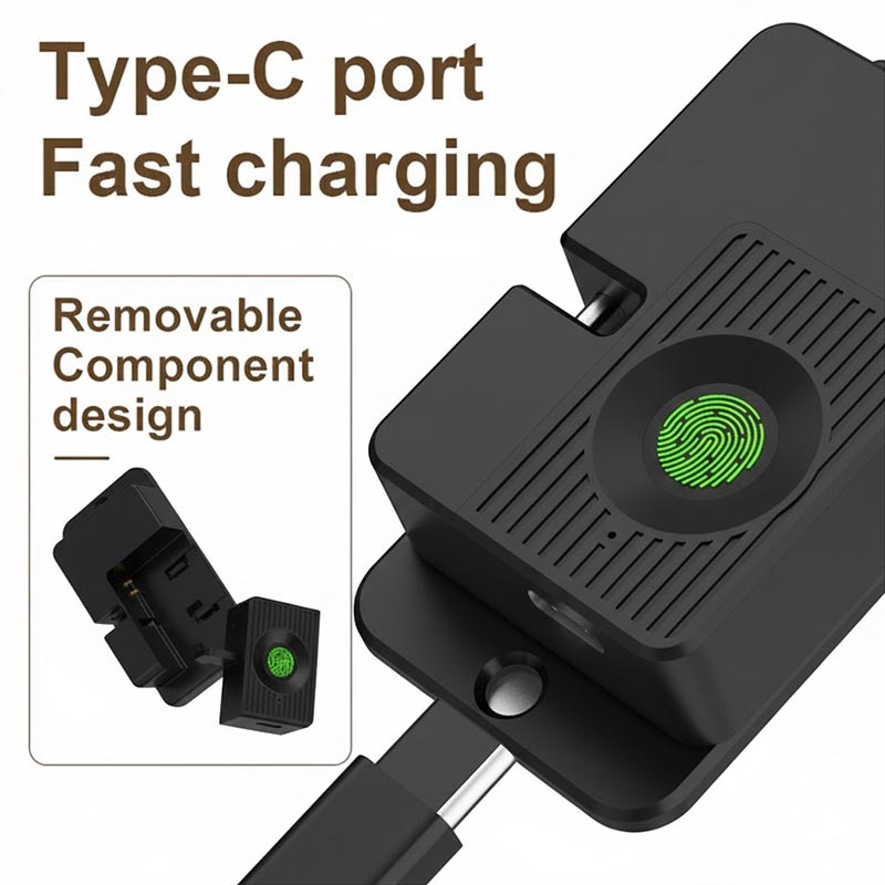 Het slimme slot is ontworpen voor een laag energieverbruik en gaat tot 10 maanden mee op een enkele lading (bij ongeveer 5 ontgrendelingen per dag). Laad snel en eenvoudig op via de USB-C poort, zodat het slot altijd klaar is voor gebruik.