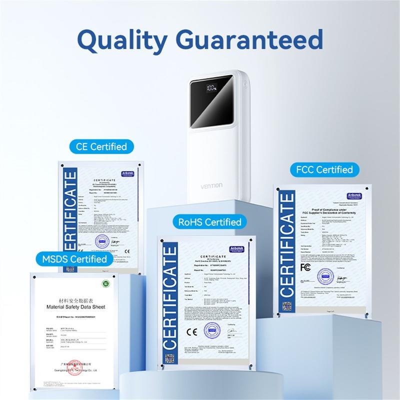 De VENTION FHL-serie 20000 mAh-powerbank is een geweldige aankoop voor iedereen die betrouwbare back-upstroom nodig heeft met snelladen en flexibele poortopties. Het combineert een hoge capaciteit, praktische draagbaarheid voor dagelijks gebruik, een duidelijk batterijdisplay en brede oplaadcompatibiliteit in één apparaat. Dit maakt het een uitstekende keuze voor reizen, werk, woon-werkverkeer en algemeen dagelijks gebruik.