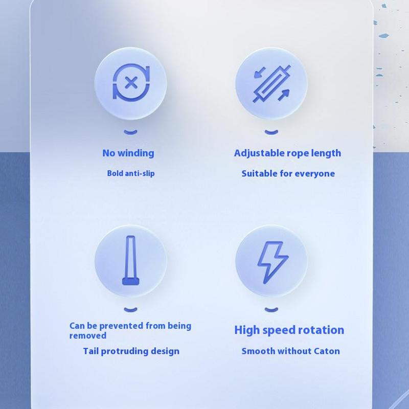Het touw is ontworpen voor soepel en comfortabel gebruik tijdens regelmatige springoefeningen. De knoopvrije constructie helpt onderbrekingen te verminderen, terwijl de handvatten zijn voorzien van een verdikte antislipgreep voor betere controle. De uiteinden van de handvatten hebben ook een verhoogd antislipontwerp om de kans op uitglijden tijdens snellere bewegingen te verminderen, waardoor het oefenen veiliger en stabieler aanvoelt.