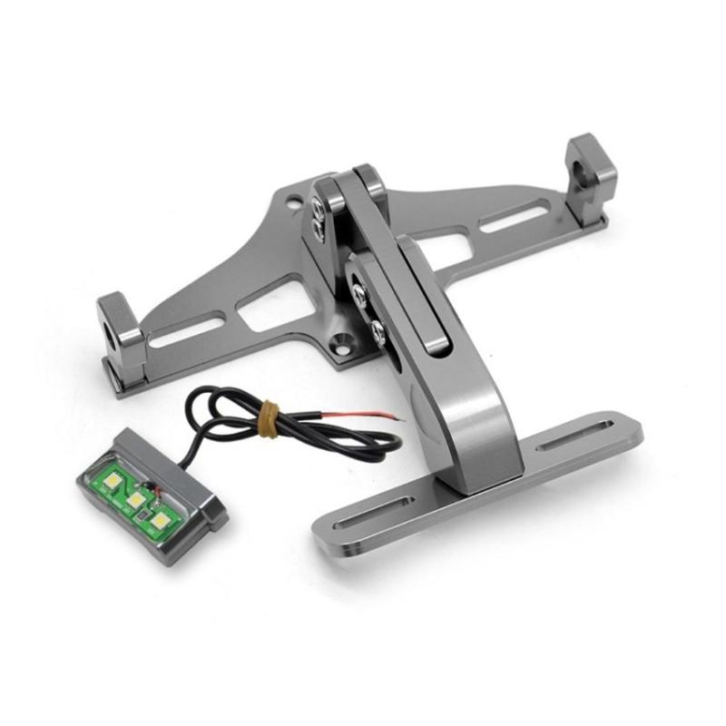 Verstelbare CNC aluminium Alloy Motorfiets kentekenplaathouder fiets licht telescopische beugel met LED-licht - Titanium Grey