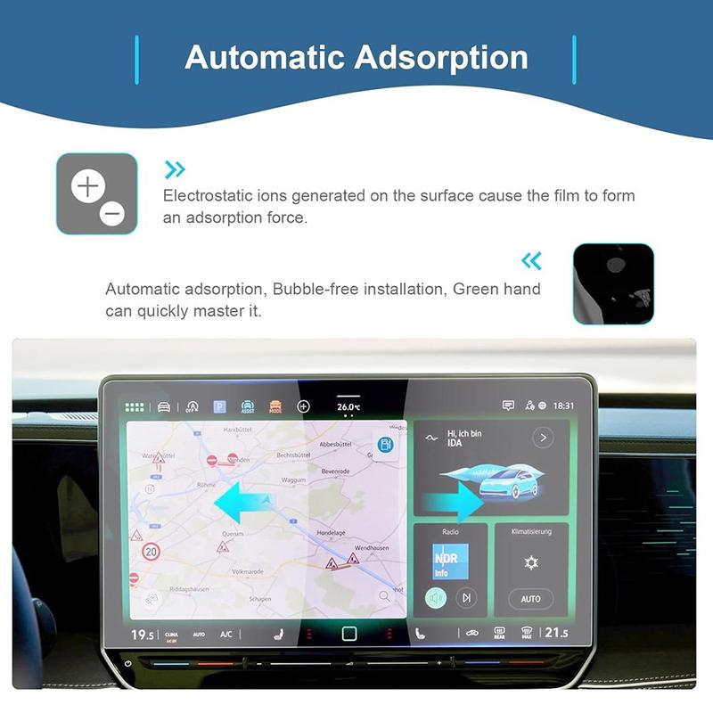 Bescherm het 12-inch navigatiescherm van uw Volkswagen ID.4X/ID.6X 2021-2024 met deze nauwkeurig gesneden screenprotector van gehard glas. Deze screenprotector is speciaal ontworpen voor modellen uit 2021-2024 en beschermt het scherm tegen krassen, vingerafdrukken, stof en dagelijkse slijtage, terwijl de originele aanraakgevoeligheid en helderheid van uw infotainmentsysteem behouden blijven.