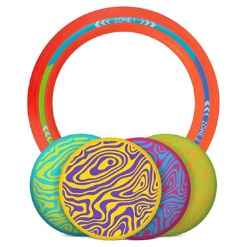 - De complete set bevat 1 vliegende doelring, 4 siliconen Wingman-schijven, een scorekaart en een opbergtas met draaggreep.