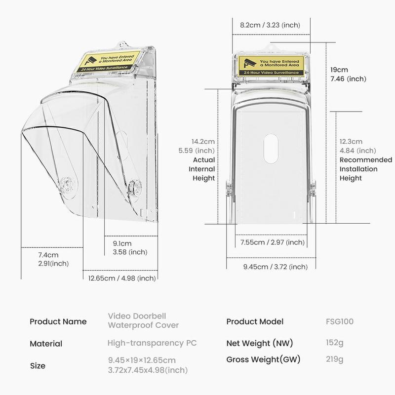 Deze hoes beschermt je deurbel effectief tegen regen, sneeuw en stof, waardoor de levensduur van je apparaat wordt verlengd en de deurbel het hele jaar door stabiel blijft werken. Ideaal voor open ingangen, poorten en buitenmuren.
