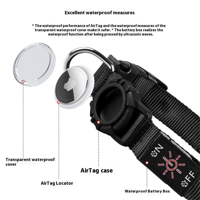 • LED hondenhalsband met hoesje voor Apple AirTag 1/2 - Waterdichte anti-verloren halsband met oplaadbaar licht