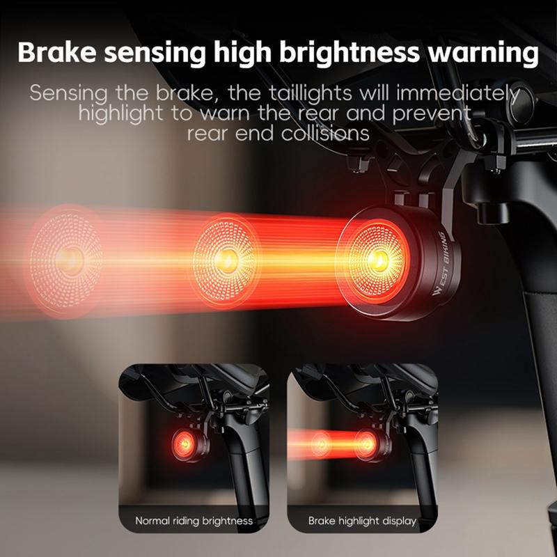 West Biking Smart magnetische remsensor achterlicht voor fietsen - Op het zadel gemonteerd achterlicht met bewegingssensor