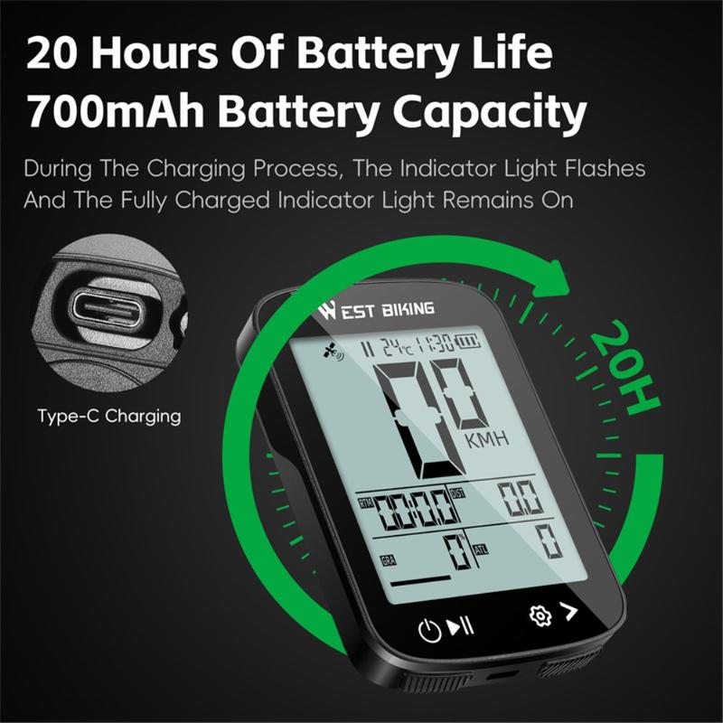 West Biking YP0702113 GPS-fietscomputer - 2,4 inch antireflectiescherm, 5-systeempositionering, IPX7 waterdicht, 20 uur batterijduur, CE-gecertificeerd