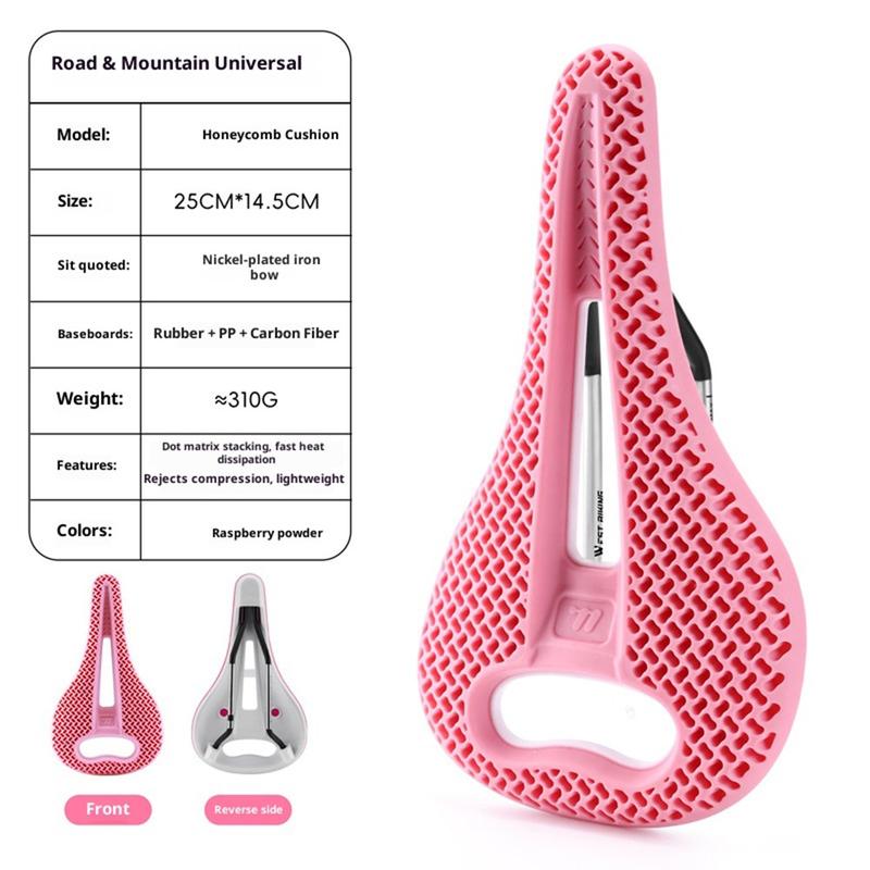 Fiets comfortabeler met het West Biking-fietszadel met honingraatstructuur en holle vorm. Dit lichtgewicht zadel is ontworpen voor racefietsen en mountainbikes en combineert een 3D-honingraatstructuur, een drukverlagend hol ontwerp en gerichte dempingszones om het comfort tijdens zowel korte als langere ritten te verbeteren.