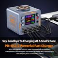 Het HD-kleurenscherm biedt realtime controle van spanning en stroom met een precisie van 0,001V / 0,001A, wat zorgt voor veilig, nauwkeurig en gecontroleerd opladen. De ingebouwde intelligente chip identificeert automatisch aangesloten apparaten en past de stroomtoevoer aan voor optimale laadprestaties.